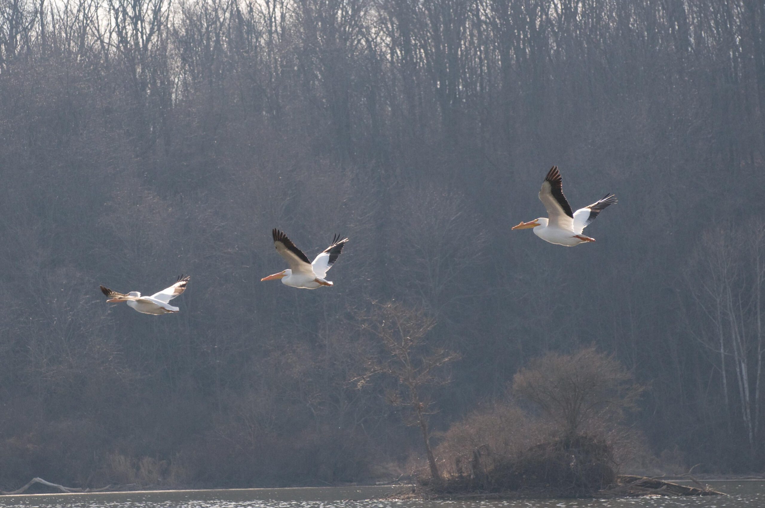 Indianapolis is located in the Mississippi Flyway, a lane for migrating birds of all kinds. American White Pelicans are one such example. They migrate between the Gulf Coast and Northern Canada by way of our wonderful Park.