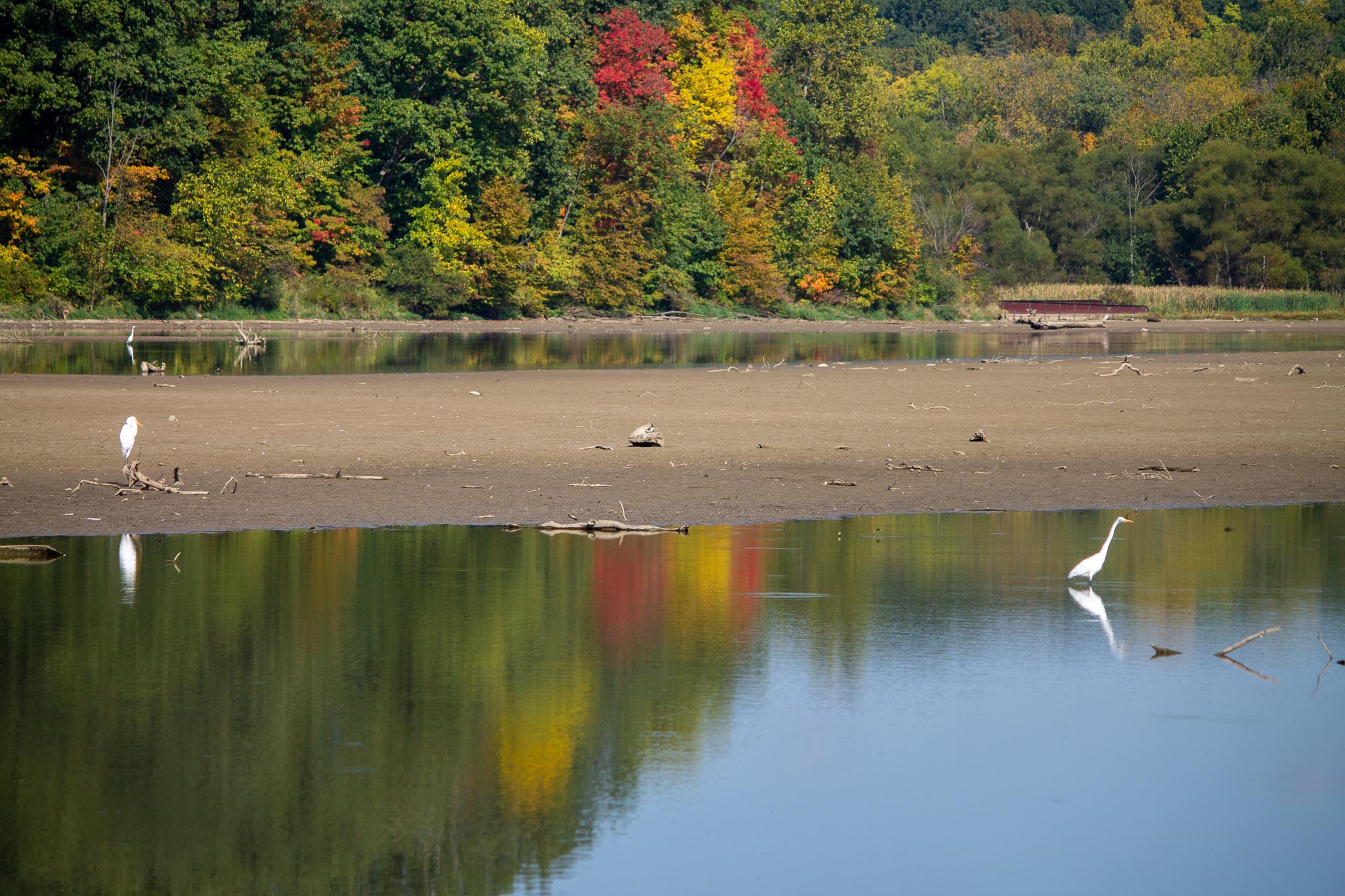 Jutting out from below the Ornithology Center >, looking west you’ll find the serene 125-acre Waterfowl Sanctuary. This special area, once a gravel pit, now a tranquil body of water surrounded by the old cofferdam, serves as a protected home and resting place for a diverse array of birdlife.